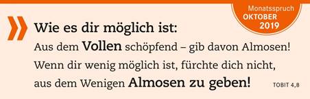 Im Buch Tobit, einem späten Buch, weshalb es zu den Apokryphen gezählt wird, finden wir als Monatsspruch für Oktober einen Vers mit ähnlichem Inhalt: Wie es dir möglich ist: Aus dem Vollen schöpfend – gib davon Almosen! Wenn dir wenig möglich ist, fürchte dich nicht, aus dem Wenigen Almosen zu geben! (Tobit 4,8) Hier spricht Tobit zu seinem Sohn Tobias.