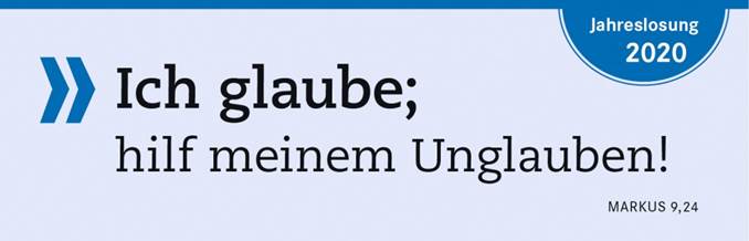 welch eine Herausforderung kommt da mit dem Vers auf uns zu, der zur Jahreslosung für das nächste Jahr ausgewählt worden ist! „Ich glaube, hilf meinem Unglauben!“ (Markus 9, 24) Ohne Zusammenhang lässt sich dieses Wort womöglich sogar „einfach“ so dahinsagen. „Jesus, hilf mir! Obwohl ich doch weiß, dass ich glaube, weiß ich auch um all die Dinge, in denen ich Dir noch nicht vertraue.“, so könnte man reden.